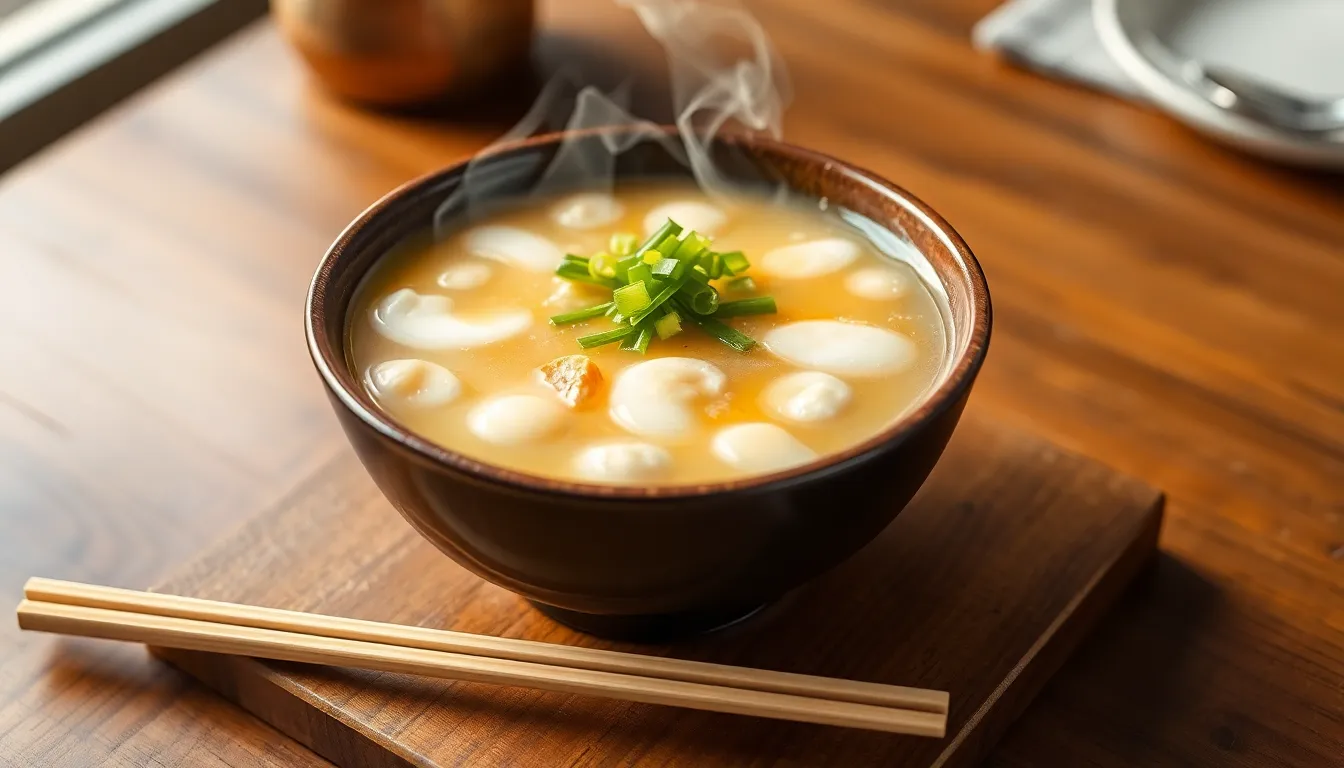 Egg drop soup features a light and flavorful broth, often made from chicken stock. This dish includes beaten eggs, which create velvety ribbons when cooked. Typically, egg drop soup incorporates cornstarch for thickening, adding a slight gloss to the consistency. Additional ingredients, such as green onions and tofu, enhance its nutritional value.